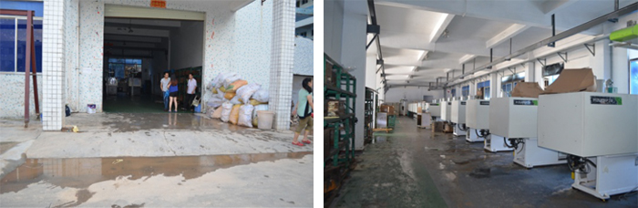 On May 12, emergency occurred in Dongguan City. Nearly 20 injection molding machines in several customers’ factories were flooded and in urgent need of repair, but Yizumi’s Dongguan squad was understaffed. At Dongguan squad’s request for backup at 9am, Yizumi’s emergency response team immediately sent 3 service engineers from headquarters and additional engineers from other regional offices to support the repair work in Dongguan. At 1 pm, the service personnel were working hard at customers’ factories to repair the flooded machines and tried to help customers resume production as soon as possible and minimize the loss.